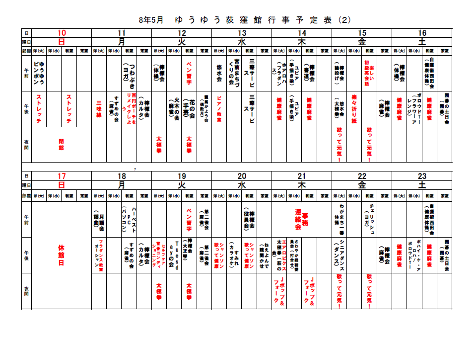 「松渓ふれあいの家」を拠点として東は『ゆうゆう西田館』、西は『ゆうゆう荻窪館』と二つのゆうゆう館を受託運営。